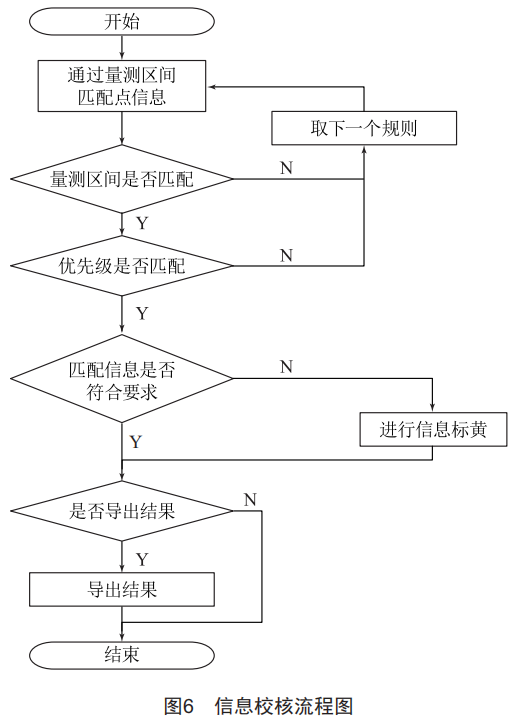 基于專家?guī)煸O(shè)定規(guī)則后,根據(jù)所選廠站或間隔,進(jìn)行基于規(guī)則匹配的遠(yuǎn)動(dòng)信號(hào)告警設(shè)置規(guī)范核查。本工具先完成規(guī)則的匹配,然后再進(jìn)行所匹配遠(yuǎn)動(dòng)信號(hào)告警設(shè)置的規(guī)范性核查,生成核查報(bào)告,羅列不規(guī)范設(shè)置。具體工作流程如圖6所示。