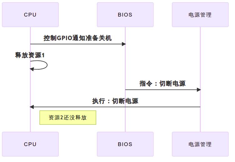 為了實(shí)現(xiàn)嵌入式Linux在關(guān)閉GPIO通知BIOS,需要說(shuō)明的是,由于沒(méi)有專(zhuān)用的電源管理GPIO的CPU,沒(méi)法做到CPU完全釋放資源后,CPU內(nèi)部硬件可以自動(dòng)通知BIOS,軟件方式控制GPIO告知BIOS狀態(tài),有可能硬盤(pán)回寫(xiě)還沒(méi)完成BIOS就把電源切斷。