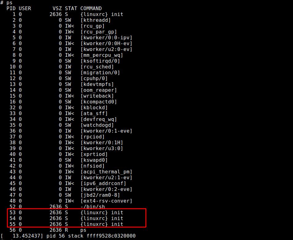 系統(tǒng)啟動(dòng)3個(gè)init進(jìn)程,記住他們的PID編號(hào),待會(huì)會(huì)被釋放掉。