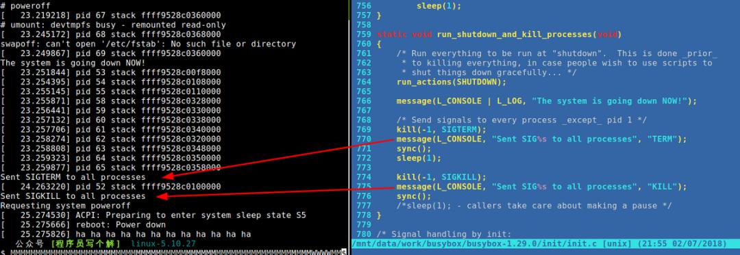 shell進(jìn)程是運(yùn)行在init之前的,busybox分別發(fā)送SIGTERM和SIGKILL信號(hào)關(guān)閉它們。