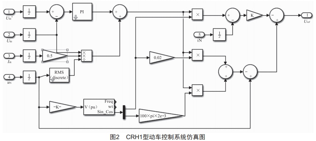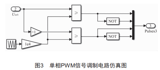 CRH1型動(dòng)車都采用正弦脈寬調(diào)制(PWM),單相脈寬調(diào)制電路結(jié)構(gòu)較為簡(jiǎn)單,仿真模型如圖3所示。