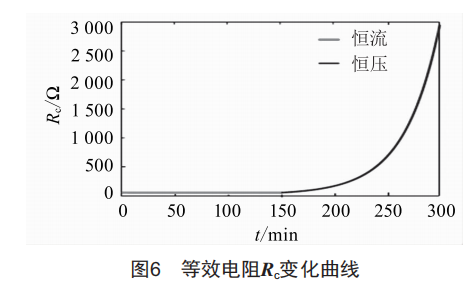 進(jìn)行時(shí)域建模時(shí),仿真軟件可能不存在所需模塊,這時(shí)需要進(jìn)行模型開發(fā)。例如,電動(dòng)汽車功率變換電路和電動(dòng)汽車蓄電池用非線性時(shí)變電阻Rc來(lái)等效,但仿真軟件無(wú)時(shí)變電阻模塊,此時(shí)可根據(jù)實(shí)際電阻曲線(圖6)建立等效時(shí)變電阻模型(圖7)。