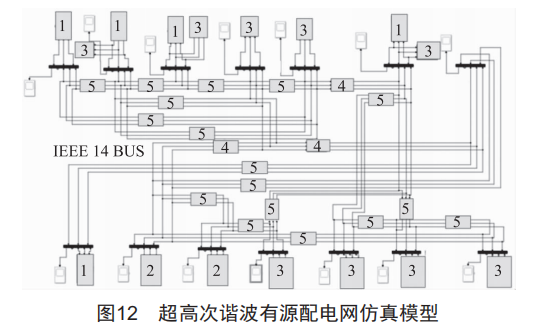 按照IEEE拓?fù)鋱D搭建超高次諧波有源配電網(wǎng)仿真模型,結(jié)果如圖12所示。