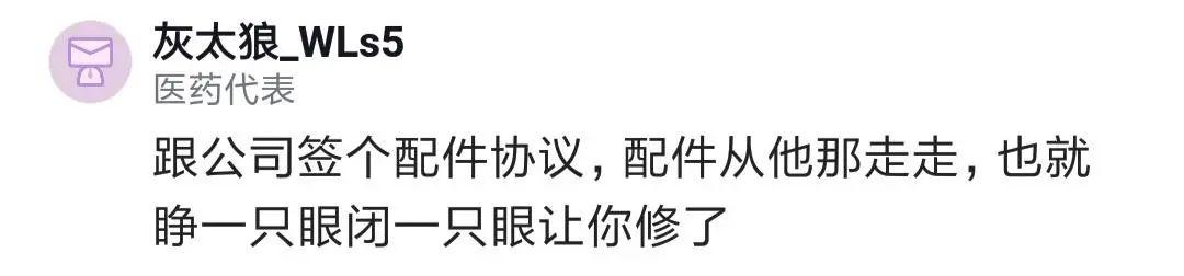 也有人給樓主出主意,跟公司簽個配件協(xié)議,配件從公司走,公司就睜一只眼閉一只眼讓你修了。