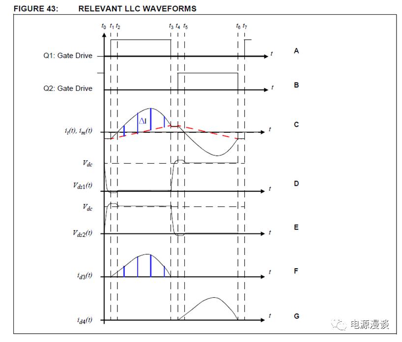 電路分析主要以時間間隔來說明,這里重點解釋一下原邊電流部分,除了負載電流反射到原邊的電流之外,諧振腔的磁化電流部分不參與能量傳遞過程。