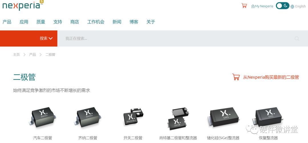 去Nexpria官網(wǎng)看看,發(fā)現(xiàn)二極管有齊納二極管、開關(guān)二極管、肖特基二極管、整流二極管等這么幾種。在整流二極管里面隨便找一個(gè)好了。注意:這里并不是說二極管只有這幾種,而是這幾種相對(duì)重要。