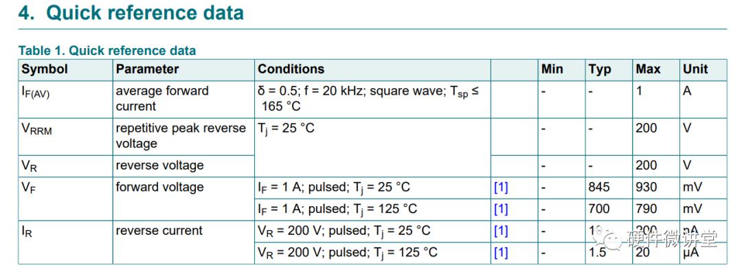 在上面表格中看到Vr最大值為200V,是從反向不擊穿維度。我們換一個(gè)角度,從擊穿維度來看,最小擊穿電壓Vbr為200V,從page5的Table 7也可以得到驗(yàn)證。
