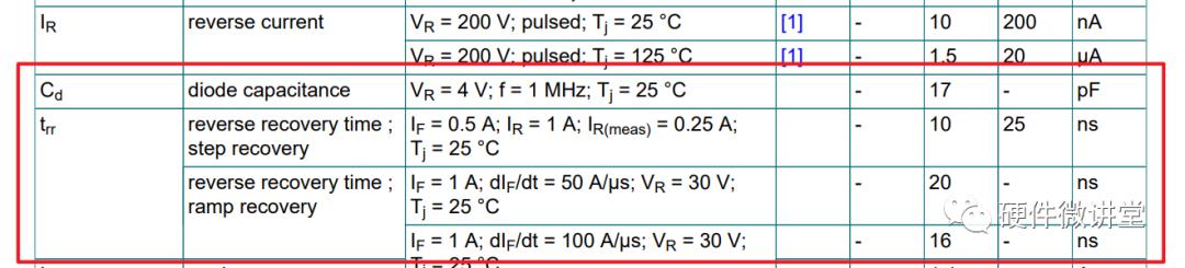 細(xì)心的小伙伴,在Datasheet的Table 7上觀察到Cd和Trr,這兩個(gè)就是。