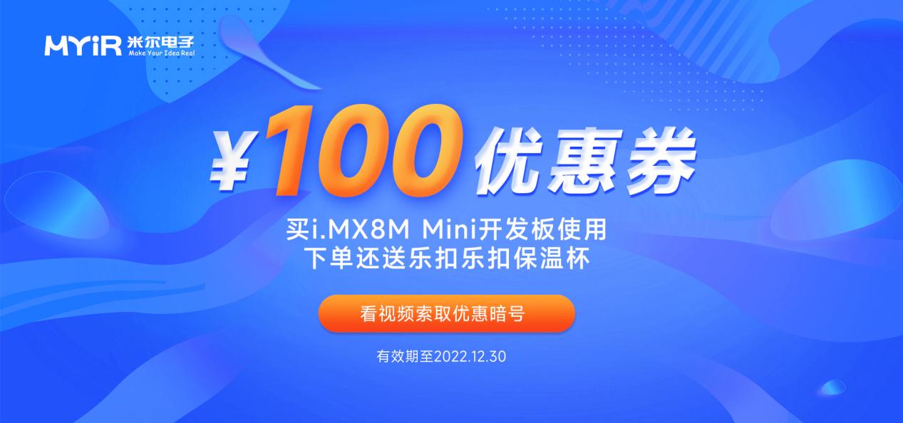 這次的MYD-C8MMX-V2開(kāi)發(fā)板在同類(lèi)型產(chǎn)品中,不僅擁有顯著的成本優(yōu)勢(shì)和價(jià)格優(yōu)勢(shì),而且在今天的NXP開(kāi)發(fā)板特惠活動(dòng)中,大家可以在視頻中找到我們的『優(yōu)惠密碼』,大家可以獲得一張『100元優(yōu)惠券』噢~當(dāng)然還有更多的驚喜藏在視頻當(dāng)中!