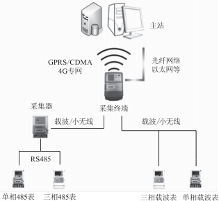 (1)終端下行通信:采集終端下行主要通過Rs485方式或載波通信方式與電能表進行數(shù)據(jù)交換,根據(jù)任務的內容定時分階段地采集電能表數(shù)據(jù)。采集到數(shù)據(jù)后直接轉發(fā)給主站,或將數(shù)據(jù)存儲在采集終端中并進行分析。
