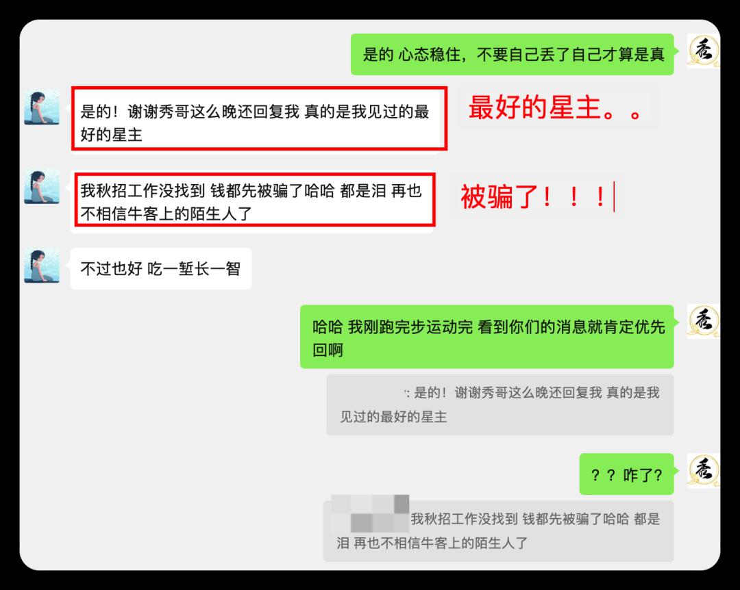 阿秀上周在跟一位星球球友聊天過程中發(fā)現(xiàn)她在校招秋招過程中被騙了。