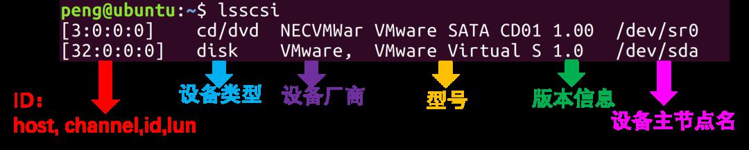 peng@ubuntu:~$ lsscsi