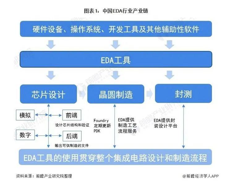 從芯片產(chǎn)業(yè)鏈來看,設(shè)計(jì)、制造、封裝、測(cè)試的分工中,EDA作為骨架貫穿始終。