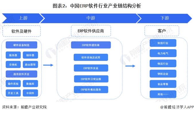 ——產(chǎn)業(yè)鏈剖析:產(chǎn)業(yè)生態(tài)完善中國(guó)ERP軟件行業(yè)產(chǎn)業(yè)鏈可以分為上中下游,其中上游包括通用軟件的開(kāi)發(fā)和相關(guān)硬件的制造,軟件開(kāi)發(fā)主要包括從操作系統(tǒng)、數(shù)據(jù)庫(kù)、中間件以及開(kāi)發(fā)工具等,硬件設(shè)備主要為服務(wù)器、存儲(chǔ)系統(tǒng)等;ERP軟件產(chǎn)業(yè)鏈的中游是ERP軟件供應(yīng)商,主要提供系統(tǒng)咨詢及試用、軟件安裝、日常運(yùn)維、售后服務(wù)等環(huán)節(jié)業(yè)務(wù);ERP軟件產(chǎn)業(yè)鏈的下游覆蓋的行業(yè)涵蓋各個(gè)領(lǐng)域,主要以工業(yè)制造業(yè)為主。
