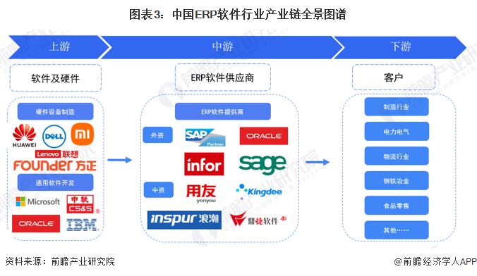 中國(guó)ERP軟件行業(yè)產(chǎn)業(yè)鏈上游硬件設(shè)備供應(yīng)商主要包括華為、戴爾、小米集團(tuán)、聯(lián)想、方正科技等提供IT設(shè)備的企業(yè),軟件類企業(yè)包括微軟、IBM、甲骨文、中國(guó)軟件等提供操作系統(tǒng)、數(shù)據(jù)庫(kù)、開(kāi)發(fā)工具、中間件的科技企業(yè);中游ERP廠商可以分為外資企業(yè)、中資企業(yè),外資企業(yè)主要有SAP、甲骨文、infor、賽捷集團(tuán),中資企業(yè)包括用友網(wǎng)絡(luò)、金蝶國(guó)際、浪潮國(guó)際、鼎捷軟件等企業(yè);下游客戶包括各類行業(yè),如用友網(wǎng)絡(luò)的客戶包括機(jī)械制造的三一重工、民用建材領(lǐng)域的東方雨虹、白酒企業(yè)瀘州老窖等知名企業(yè)。