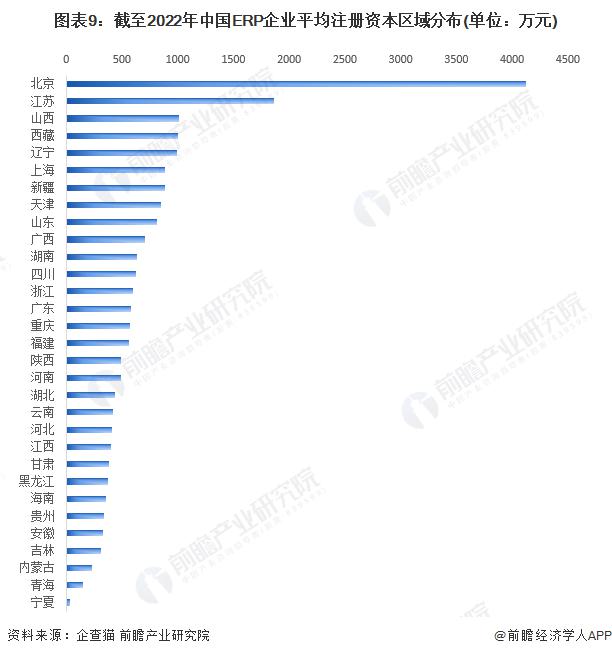 ——北京的ERP軟件企業(yè)平均注冊(cè)資本更高根據(jù)中國(guó)企業(yè)數(shù)據(jù)庫(kù)企查貓,目前中國(guó)ERP企業(yè)的平均注冊(cè)資本區(qū)域分布中,北京企業(yè)的平均注冊(cè)資本最高,達(dá)到為4125萬(wàn)元。此外,江蘇的ERP企業(yè)平均注冊(cè)規(guī)模均在1500萬(wàn)以上,規(guī)模相對(duì)較大。北京重點(diǎn)ERP軟件企業(yè)包括用友網(wǎng)絡(luò)、致遠(yuǎn)互聯(lián)、暢捷通等。