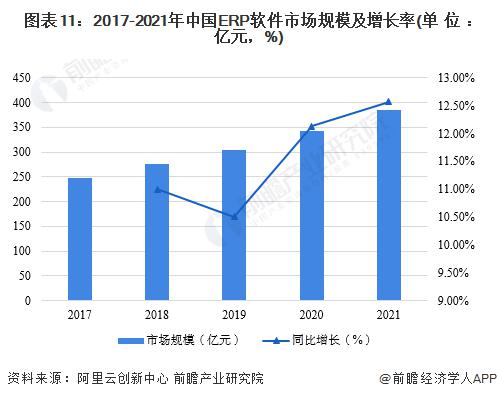 ——中國(guó)ERP軟件市場(chǎng)規(guī)模逐年擴(kuò)大近年來(lái),隨著企業(yè)對(duì)管理水平的日益重視,越來(lái)越多的企業(yè)將目光投向ERP軟件市場(chǎng),希望通過(guò)ERP系統(tǒng)的建設(shè)增強(qiáng)企業(yè)的綜合競(jìng)爭(zhēng)力,從而推動(dòng)了國(guó)內(nèi)ERP軟件市場(chǎng)的穩(wěn)定增長(zhǎng)。根據(jù)阿里云創(chuàng)新中心發(fā)布的《2021中國(guó)工業(yè)軟件發(fā)展白皮書》,中國(guó)經(jīng)營(yíng)管理類工業(yè)軟件市場(chǎng)規(guī)模不斷擴(kuò)大,其細(xì)分市場(chǎng)包括企業(yè)資源計(jì)劃(ERP)軟件市場(chǎng)、設(shè)施管理(FM)軟件市場(chǎng)、供應(yīng)鏈管理(SCM)軟件市場(chǎng)等,其中ERP市場(chǎng)占據(jù)了經(jīng)營(yíng)管理類工業(yè)軟件市場(chǎng)85%的市場(chǎng)份額,中國(guó)ERP軟件市場(chǎng)較為成熟,目前已經(jīng)涌現(xiàn)出一批高質(zhì)量的軟件企業(yè),國(guó)產(chǎn)軟件在具備一定市場(chǎng)規(guī)模的基礎(chǔ)上。2017-2021年,我國(guó)ERP軟件市場(chǎng)規(guī)模一直處在增長(zhǎng)的趨勢(shì),但隨著ERP軟件廠商第一波推廣熱潮逐漸褪去,且如今ERP軟件要求高度契合行業(yè)業(yè)務(wù)特點(diǎn)進(jìn)行開(kāi)發(fā),因此普及速度不及通用性產(chǎn)業(yè),近年行業(yè)整體僅保持中高速發(fā)展。2018-2019年中國(guó)ERP軟件市場(chǎng)規(guī)模的增速出現(xiàn)放緩,但仍維持在10%以上。2021年,中國(guó)ERP市場(chǎng)規(guī)模約為385億元,同比增長(zhǎng)12.57%。