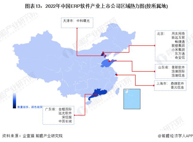 從代表性企業(yè)分布情況來(lái)看,北京市的代表性企業(yè)分布數(shù)量最多,有用友網(wǎng)絡(luò)、致遠(yuǎn)互聯(lián)、暢捷通等ERP軟件企業(yè),還有產(chǎn)業(yè)鏈上游的聯(lián)想、小米、東方通等企業(yè);其次為廣東省,主要有金蝶國(guó)際、遠(yuǎn)光軟件等ERP軟件企業(yè),以及產(chǎn)業(yè)鏈上游的中國(guó)長(zhǎng)城、深信服等;山東省有普聯(lián)軟件、浪潮信息;上海市有鼎捷軟件、普元信息等。