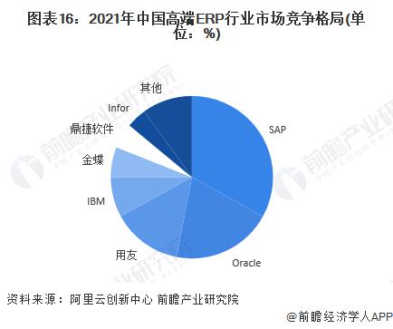 在高端ERP軟件市場(chǎng),仍然是國(guó)外的廠商占據(jù)主要市場(chǎng),主要是由于國(guó)內(nèi)ERP廠商起步較晚,我國(guó)高端ERP軟件的技術(shù)水平,產(chǎn)品能力和產(chǎn)業(yè)規(guī)模均與我國(guó)制造業(yè)大國(guó)的地位不匹配。2021年,我國(guó)高端ERP軟件市占率最高的是SAP,達(dá)到了33%,其次是Oracle,市占率達(dá)到20%。