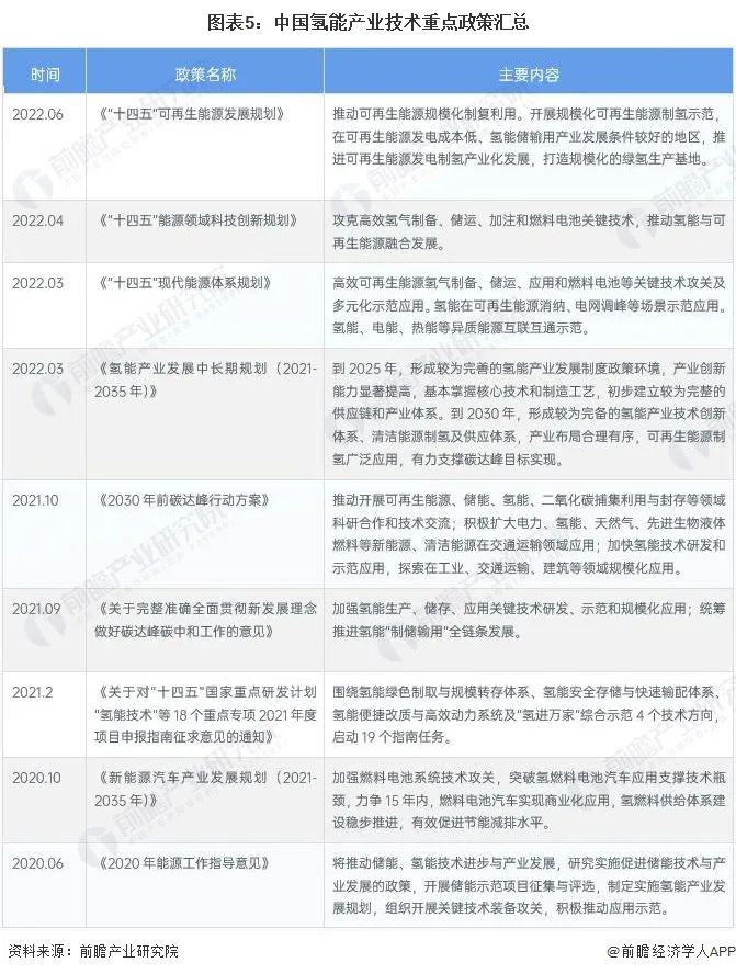 中國的氫能與燃料電池技術(shù)研究始于上世紀50年代。20世紀80年代以來,相繼啟動了863計劃和973計劃,加速以研究為基礎(chǔ)的技術(shù)商業(yè)化項目,氫能和燃料電池均被納入其中。“十三五”期間,氫能與燃料電池開始步入快車道。2016年以來相繼發(fā)布《能源技術(shù)革命創(chuàng)新行動計劃(2016-2030年)》、《節(jié)能與新能源汽車產(chǎn)業(yè)發(fā)展規(guī)劃(2012-2020年)》、《中國制造2025》等頂層規(guī)劃。2019年兩會期間,氫能首次寫入政府工作報告。2020年4月,氫能被寫入《中華人民共和國能源法》(征求意見稿)。2021年,“十四五”規(guī)劃指出要在氫能與儲能等前沿科技和產(chǎn)業(yè)變革領(lǐng)域,組織實施未來產(chǎn)業(yè)孵化與加速計劃,謀劃布局一批未來產(chǎn)業(yè)。2022年發(fā)布第一個氫能源專項規(guī)劃——《氫能產(chǎn)業(yè)發(fā)展中長期規(guī)劃(2021-2035 年)》,為中國氫能源產(chǎn)業(yè)發(fā)展作為指引。