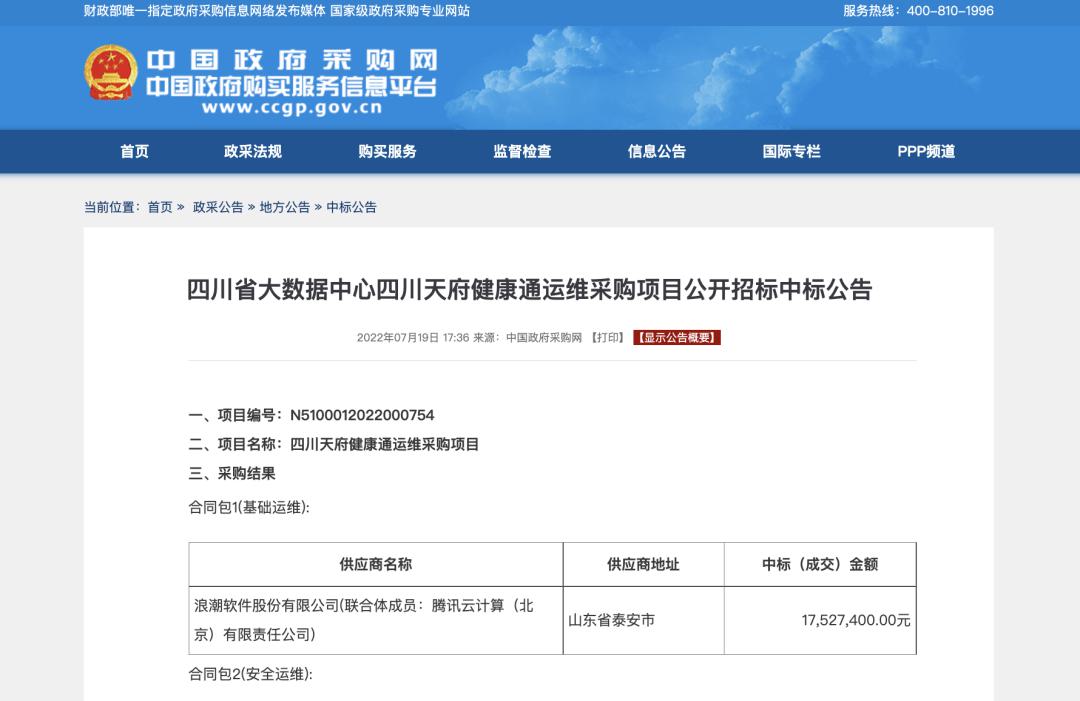 有網(wǎng)友挖出了一個中標(biāo)公告,說這套系統(tǒng)背后使用的是浪潮的服務(wù)器: