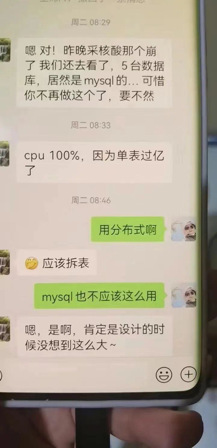 成都全市人口超過2000萬,每天一次核酸,那就是單日新增兩千萬條記錄,最近幾天一直在做,數(shù)據(jù)容量很快就是幾億的規(guī)模,如果后端用MySQL還不分表,那確實夠嗆。