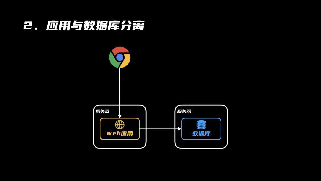 慢慢的,用戶量開始多了起來,一臺服務(wù)器有點(diǎn)夠嗆,把它們拆開成兩臺服務(wù)器,一臺專門運(yùn)行Web服務(wù),一臺專門用來運(yùn)行數(shù)據(jù)庫,這樣它們就能獨(dú)享服務(wù)器上的CPU和內(nèi)存資源,不用互搶了。