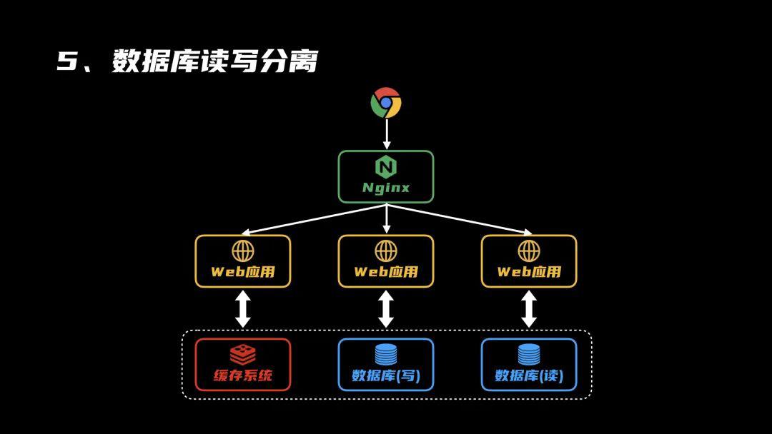 隨著系統(tǒng)的運(yùn)行和用戶的增長,數(shù)據(jù)量越來越多,數(shù)據(jù)庫的瓶頸開始顯現(xiàn),讀寫明顯變慢。這時候,可以增加新的數(shù)據(jù)庫服務(wù)器,將讀寫進(jìn)行分離,二者做好數(shù)據(jù)同步,提高數(shù)據(jù)庫服務(wù)的整體I/O性能。