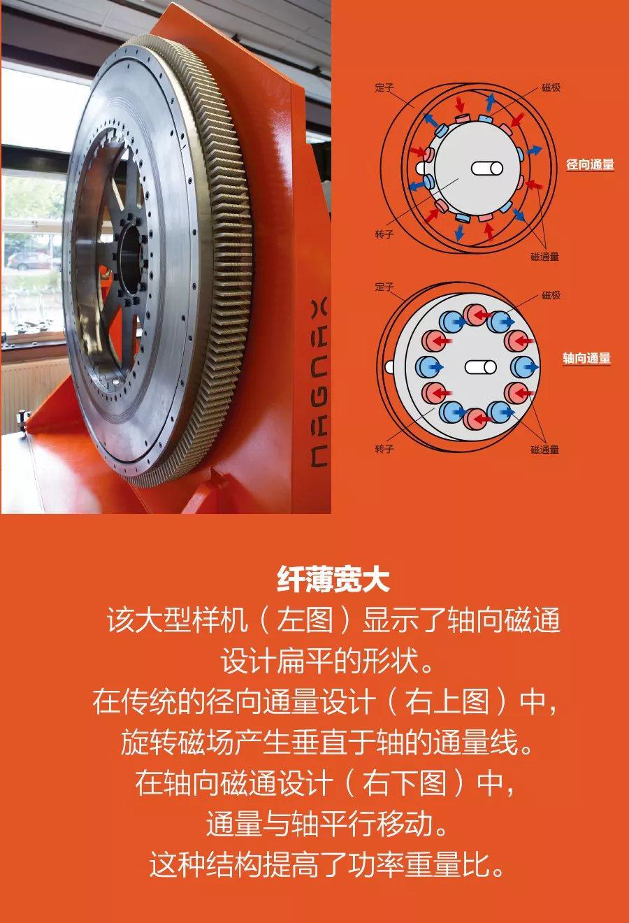 我們的軸向磁通電機(jī)顛覆了傳統(tǒng)電機(jī)的構(gòu)造。它使用兩個(gè)轉(zhuǎn)子,分別置于定子兩側(cè),起到了支撐作用。在這種結(jié)構(gòu)中,定子僅僅是電磁齒部的托架,而非轉(zhuǎn)子的支撐物或磁軛。換句話說(shuō),定子可以無(wú)軛——這就是產(chǎn)品名稱中包含這個(gè)詞的原因。去除約占定子鐵芯2/3的鋼筒形磁軛可以大大減輕電機(jī)的重量。無(wú)軛電機(jī)與老式磁軛軸向發(fā)動(dòng)機(jī)相比,功率密度增加了1倍,是傳統(tǒng)發(fā)動(dòng)機(jī)(如寶馬i3發(fā)動(dòng)機(jī))的4倍。通過(guò)減少電機(jī)的鐵損耗,它還提高了效率。鐵損耗原因有二。首先,在定子中,交流電對(duì)鐵芯反復(fù)磁化和消磁會(huì)消耗能量,這一過(guò)程稱為磁滯損耗;第二是通過(guò)鐵芯的不同磁通量造成了渦流損耗。這種設(shè)計(jì)具備了較高的功率密度,其中還有其他原因。在本設(shè)計(jì)中,磁通量從第一個(gè)轉(zhuǎn)子輪盤上的永磁體通過(guò)定子鐵芯,到達(dá)第二個(gè)轉(zhuǎn)子輪盤上的永磁體,這是一條相對(duì)短而直的路徑。借助這種單向性,Magnax使用僅適于單向通量的晶粒取向鋼,可以進(jìn)一步將鐵芯通量損耗降低85%。這種鋼不能用于傳統(tǒng)的徑向通量發(fā)動(dòng)機(jī)或發(fā)電機(jī),因?yàn)樵趥鹘y(tǒng)機(jī)器中,通量從轉(zhuǎn)子通過(guò)定子,再回到轉(zhuǎn)子——這是一個(gè)多向路線。Magnax公司與蒂森克虜伯鋼鐵公司緊密合作,設(shè)計(jì)了層狀晶粒取向芯部。這種設(shè)計(jì)還有其他優(yōu)點(diǎn):在我們的無(wú)軛軸向磁通設(shè)計(jì)中,定子需要的銅大約是同等功率和扭矩徑向通量發(fā)動(dòng)機(jī)的60%,轉(zhuǎn)子需要的磁性材料大約是同等功率和扭矩徑向通量發(fā)動(dòng)機(jī)的80%。