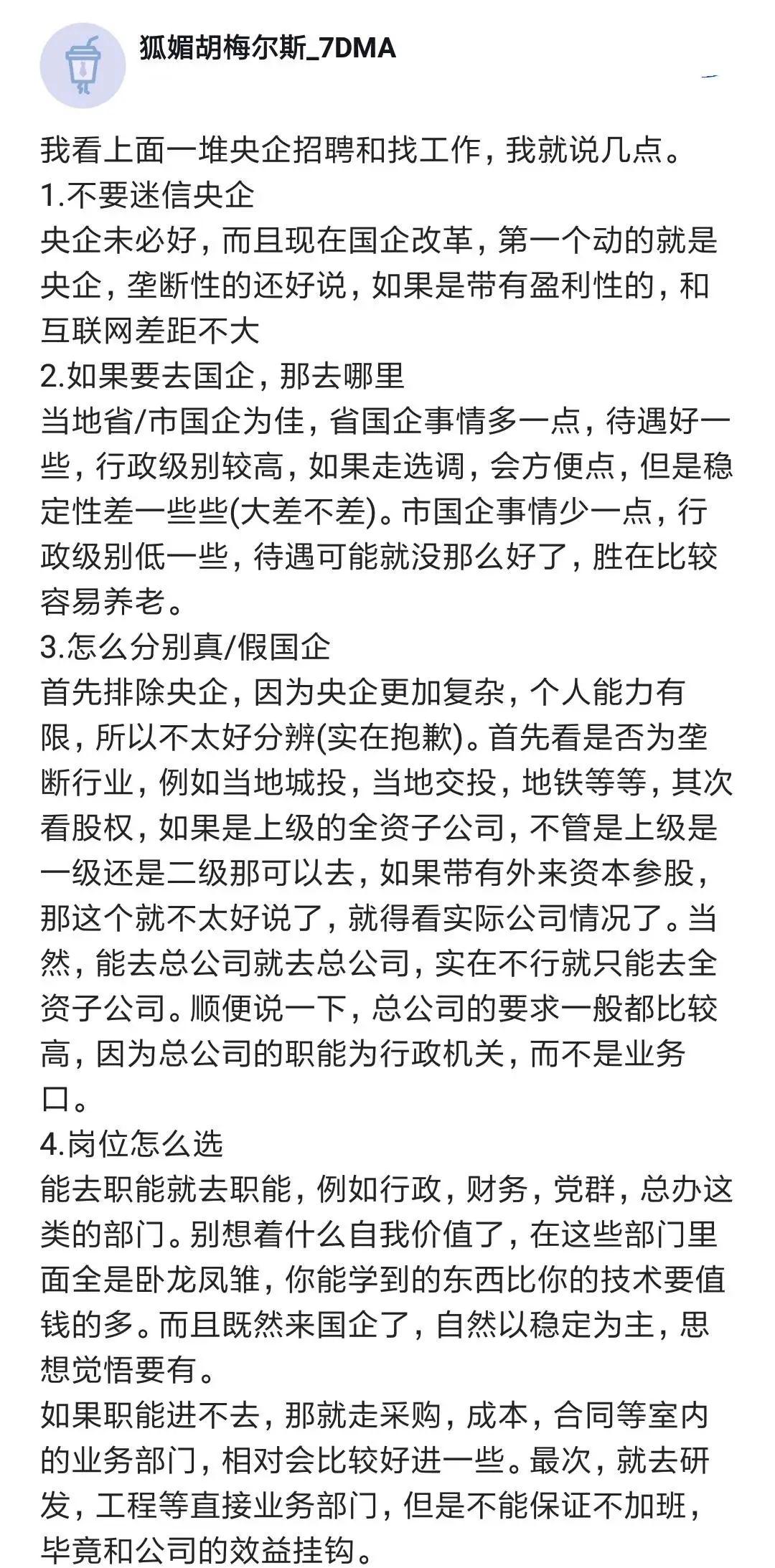 最近很多人想去央國企,說點干貨:不要迷信央企,去當(dāng)?shù)厥∈袊笞詈茫瑢W(xué)會分辨真假國企!
