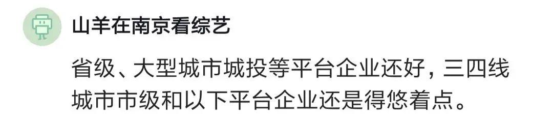 有人說,省級和大型城市城投等平臺企業(yè)還好,三四線城市市級和以下平臺企業(yè)還是得悠著點。