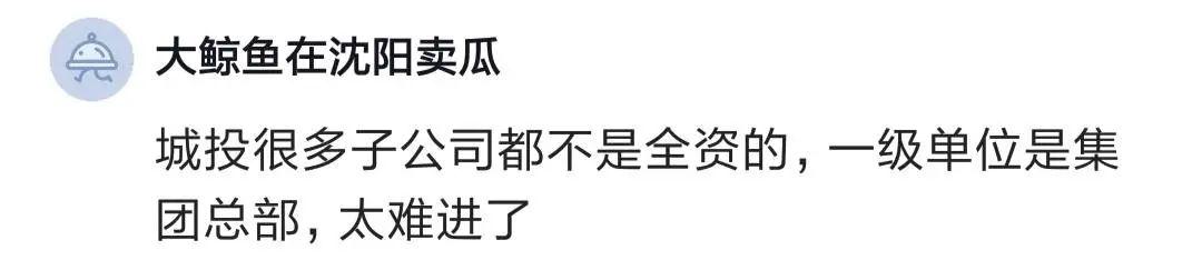 有人說,城投很多子公司不是全資的,一級單位是集團總部,太難進了。