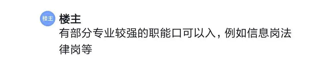 樓主回答,有部分專業(yè)較強的職能口可以入,例如信息崗和法律崗等。