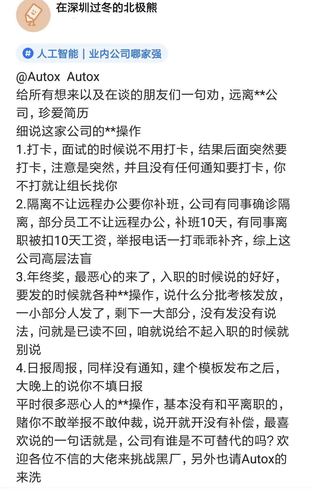 Autox安途內(nèi)部員工爆料:垃圾公司!拖欠年終獎(jiǎng),要求隔離員工補(bǔ)班,規(guī)章制度隨意更改!
