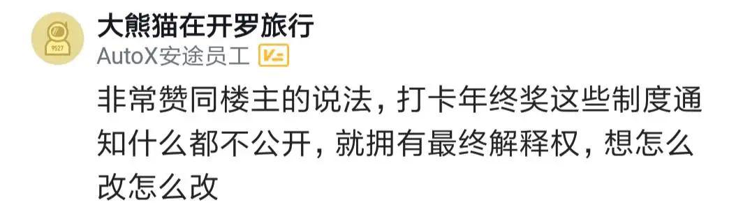 樓主的爆料炸出了許多安途內(nèi)部員工,有人說(shuō)打卡年終獎(jiǎng)這些制度都不公開(kāi),想怎么改怎么改。
