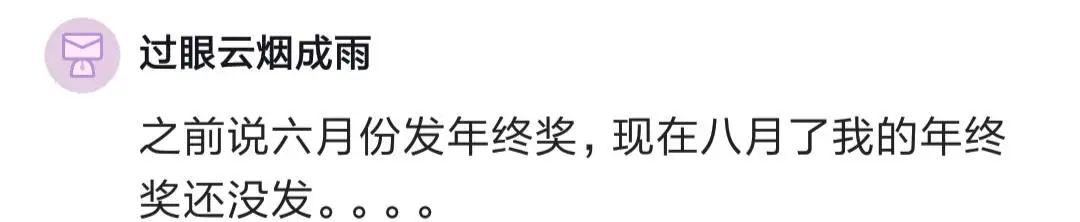 有人說(shuō),之前說(shuō)六月發(fā)年終獎(jiǎng),現(xiàn)在八月了還沒(méi)發(fā)。