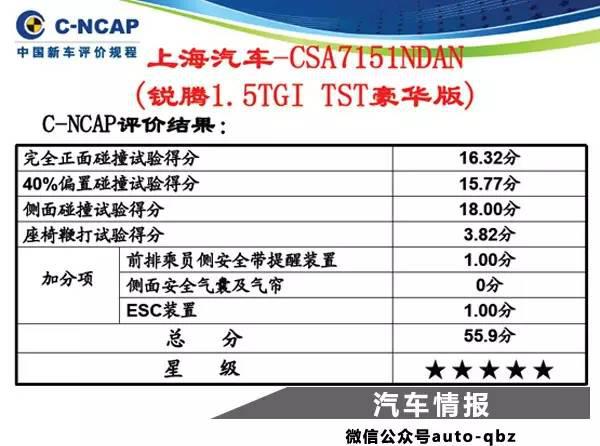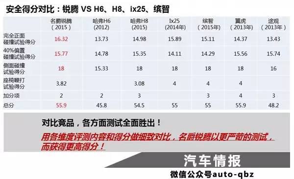 早在2015年9月11日,中國(guó)汽車技術(shù)研究中心發(fā)布了2015年度C-NCAP第三批車型評(píng)價(jià)結(jié)果。本次發(fā)布的結(jié)果共涉及7個(gè)車型,其中包括1個(gè)A類車、1個(gè)B類車、5個(gè)SUV車型。在SUV車型中,接受碰撞試驗(yàn)銳騰1.5T豪華版以55.9分成績(jī)名列第一,獲得五星安全稱號(hào)。