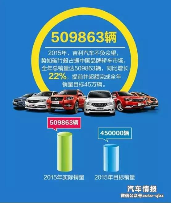 發(fā)自內心的說,經(jīng)過數(shù)十年的發(fā)展,中國品牌汽車在品牌塑造、外觀設計、整車集成、工藝制造等方面都有顯著進步,其產(chǎn)品定位逐漸趨于中高端化,已經(jīng)進入了和合資產(chǎn)品正面競爭的新階段。這其中,身為自主陣營里的領軍車企,吉利汽車2015年的銷量表現(xiàn)更是一路上揚,其1-12月份累計銷量達509863輛,同比增長22%,提前并超額完成全年銷量目標45萬輛。