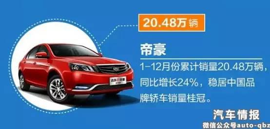 在眾人獨醉皆不醒時,帝豪就是為數(shù)不多活下來的車型,正所謂:天將降大任于帝豪也,必先苦其心志,勞其筋骨,餓其體膚,空乏其身,行拂亂其所為,所以動心忍性,曾益其所不能。所以在多年的蟄伏下,帝豪在2015年交出了一份滿意的成績單,12月份銷量達到23491輛,環(huán)比增長8.1%;1-12月份累計銷量20.48萬輛,同比增長24%,連續(xù)數(shù)年傲居A級車之巔,即使是一些合資品牌,看到這份沉甸甸的成績單也會艷羨不已。
