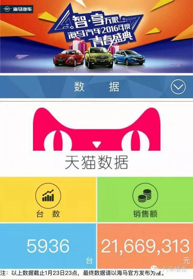 不僅如此,海馬汽車攜手阿里汽車在天貓商城推出了“智·享無限 海馬汽車2016年度青春盛典”,此活動(dòng)從1月13日啟動(dòng)至1月23日結(jié)束,共計(jì)10天。