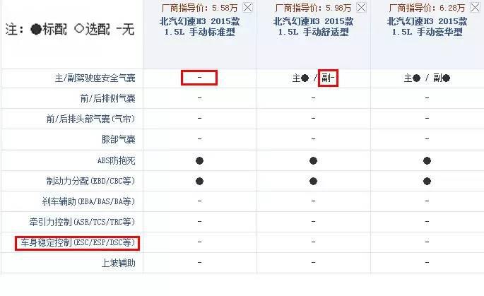 通過上表我們看見,S3身上車身穩(wěn)定系統(tǒng)(ESC/ESP/DSC)全系不存在,高級點(diǎn)的安全系統(tǒng)(牽引力控制系統(tǒng),剎車輔助,上坡輔助)更是不會有,讓人難以置信的是,某些低配車型甚至連主副駕駛安全氣囊、ABS防抱死也沒有。