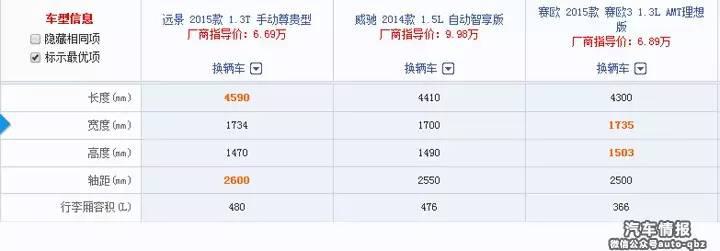 在這里,我們給新遠景找了兩位對手,分別是一汽豐田的威馳和上汽通用的賽歐,通過它們長、寬、高、軸距和后備箱容積的對比,我們看看新遠景的空間如何。