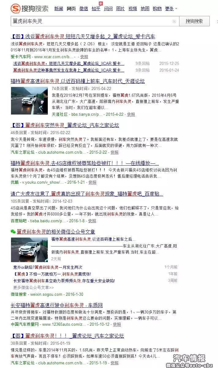 帶著疑惑,情報猿上網(wǎng)百度了一下關(guān)鍵詞“翼虎剎車失靈”,出來的結(jié)果讓人膽戰(zhàn)心驚,原來剎車失靈早已不是個例,在網(wǎng)絡(luò)上已成蔓延之勢。