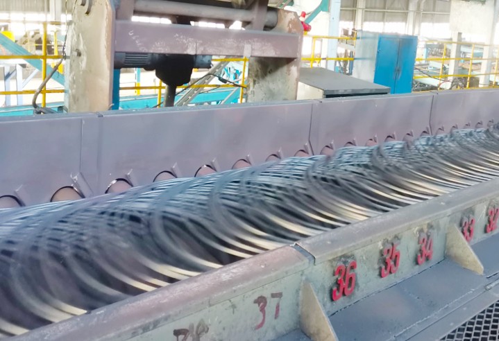線材是經(jīng)過軋機軋制后熱軋型材,主要是由鋼坯經(jīng)過加熱爐—粗軋—中軋—預精軋—精軋—吐絲—冷卻運輸—收集等一系列工藝流程生成出來的產(chǎn)品。