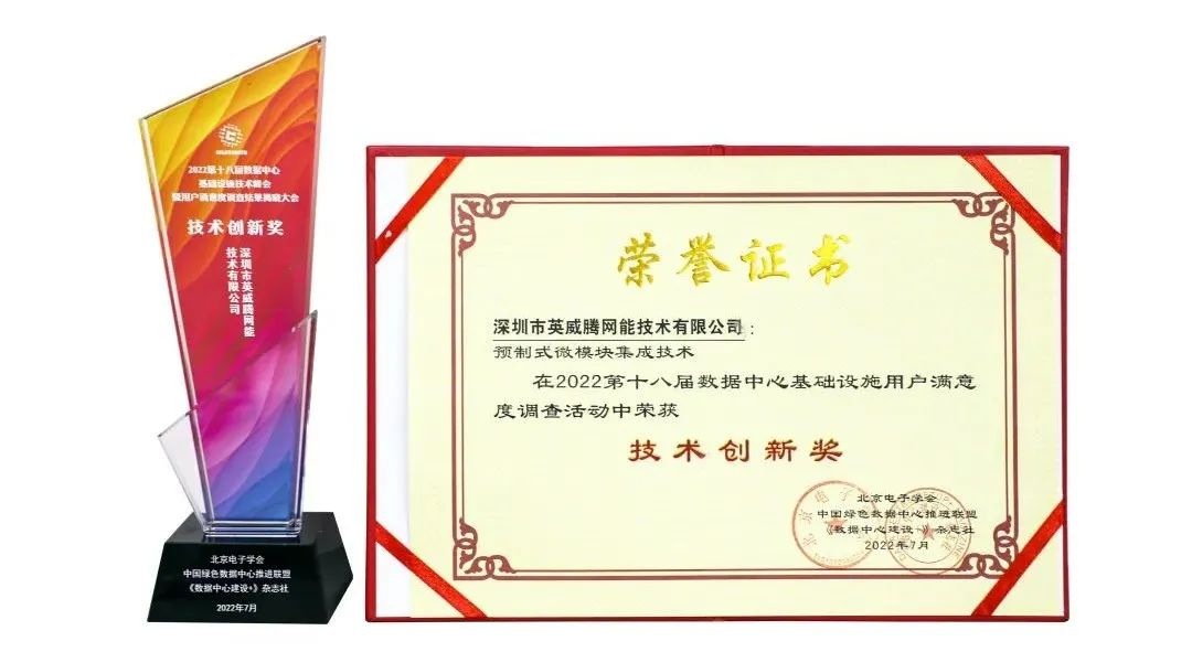 深圳市英威騰網能技術有限公司作為值得信賴的數(shù)據中心解決方案提供商,自主研制開發(fā)的英智iSmart、威智iWit、騰智iTalent三大“智”系列產品脫穎而出,榮獲本次大會組委會頒發(fā)的預制式微模塊集成技術——“技術創(chuàng)新獎”。