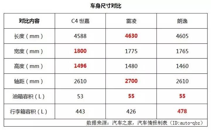 車身尺寸對(duì)比,雷凌獲勝