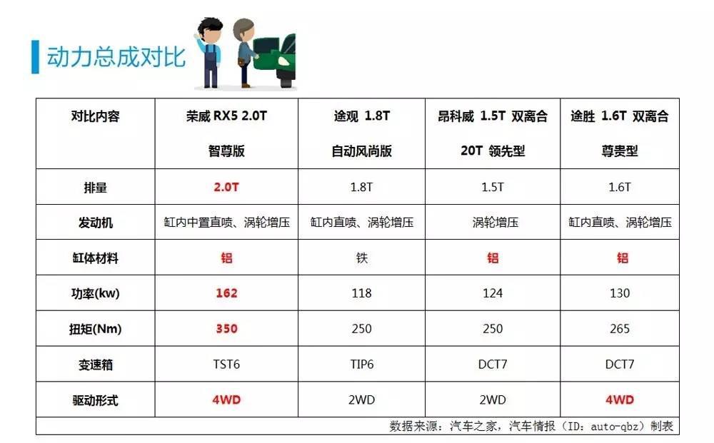 在動力對比環(huán)節(jié),榮威RX5的2.0T發(fā)動機要比三位對手強出不少,尤其是對標昂科威的1.5T,途勝的1.6T,簡直就是欺負小學(xué)生的節(jié)奏。用上汽乘用車公司產(chǎn)品規(guī)劃部總監(jiān)劉濤的話說,這臺2.0T發(fā)動機最大功率220馬力,最大扭矩輸出350牛米,主要動力性能超越主流合資品牌產(chǎn)品,甚至超越了行業(yè)主流3.0L發(fā)動機。