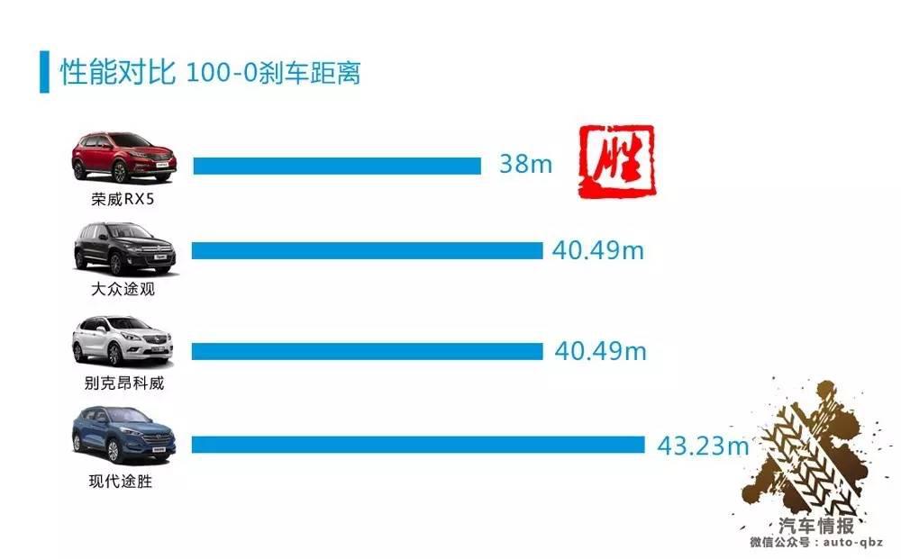 不僅是加速環(huán)節(jié)的勝出,從100-0的剎車距離看,榮威RX5的38米成績堪稱優(yōu)秀,領(lǐng)先現(xiàn)代途勝5.23米,這無疑為駕駛員增添了許多信心。