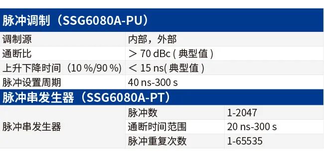 SSG6000A標配了高精度時鐘源,可選配安裝脈沖調(diào)制、脈沖發(fā)生器以及脈沖串發(fā)生器,可輸出最低寬度為20ns的脈沖,且分辨率可達10ns,能充分滿足汽車毫米波雷達系統(tǒng)測試。
