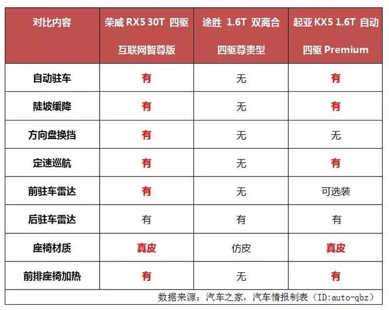 反觀兩位韓系小伙伴就有點吝嗇了,尤其是途勝兄,小編上面說的那些配置一個都沒有,KX5還好一點,至少在部分配置上還是滿足的。好吧,都是一個地方來的,并且還屬于一個集團的,這差別是不是有點大呢?